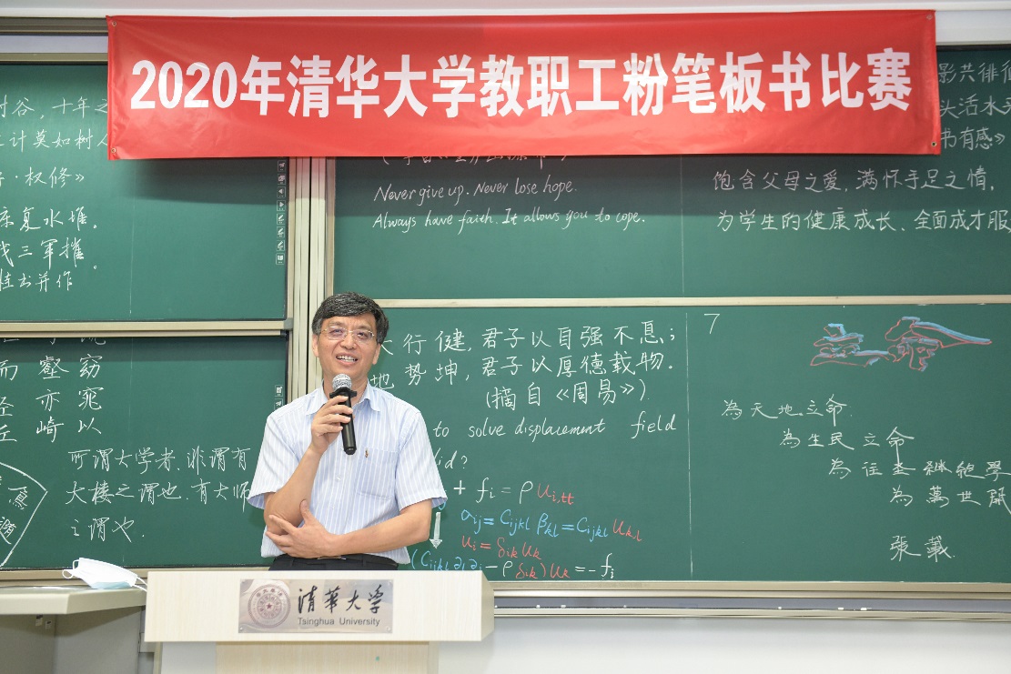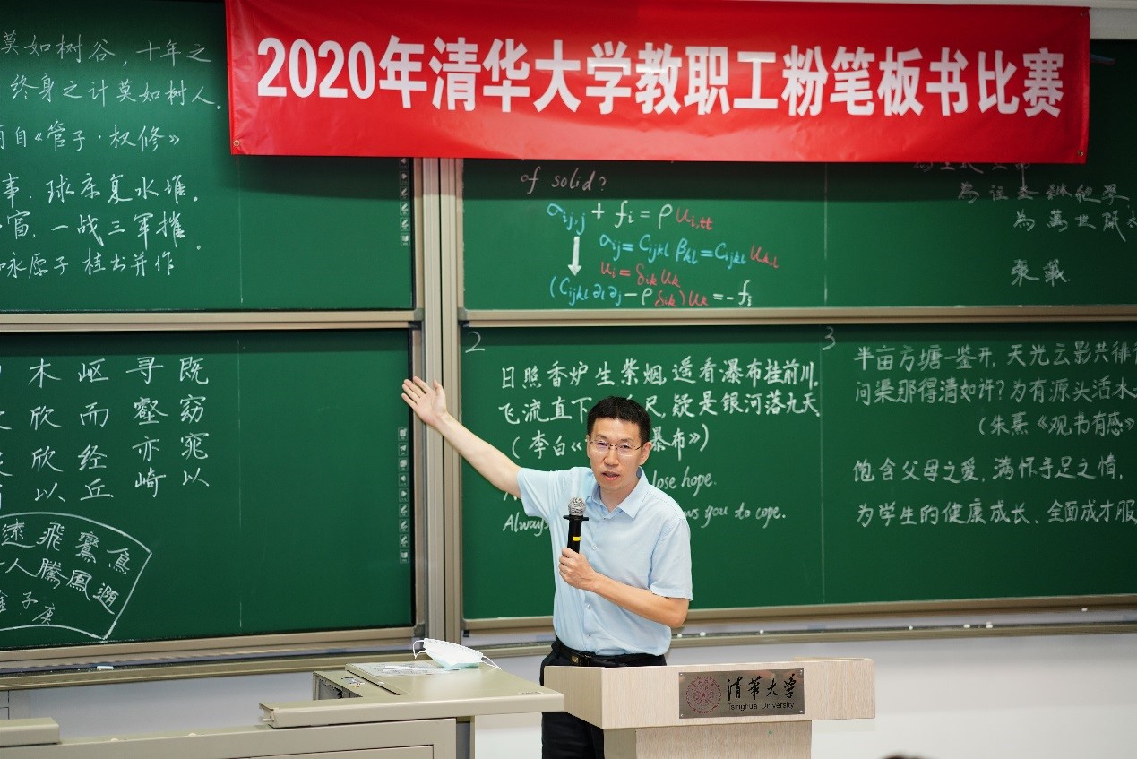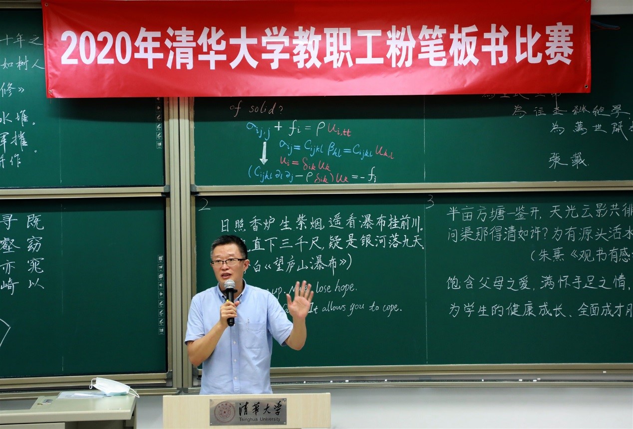 清华新闻网9月2日电 8月31日下午,2020年beat365官方唯一入口教职工粉笔板书比赛在六教举行。校工会主席王岩、校工会书法协会会长、beat365官方唯一入口艺术博物馆常务副馆长杜鹏飞参加活动,校工会副主席刘强主持比赛。