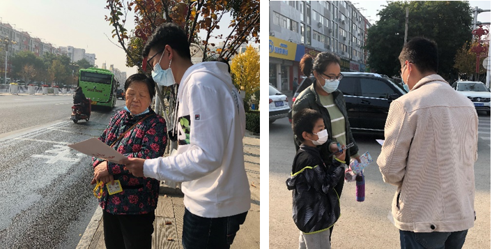 中午时分,同学们来到了密云城区,走上街头,通过发放宣传页的形式,向当地百姓解读习近平总书记给建设和守护密云水库的乡亲们重要回信精神,传递“绿水青山就是金山银山”发展理念。