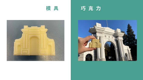 “清华文创雪糕”组对清华地标性建筑进行建模,并制作了不同样式的雪糕模具和包装。同时,小组在包装上印刷了二维码,消费者可以二维码为窗口,连通线上线下,进一步了解清华园的校园文化。