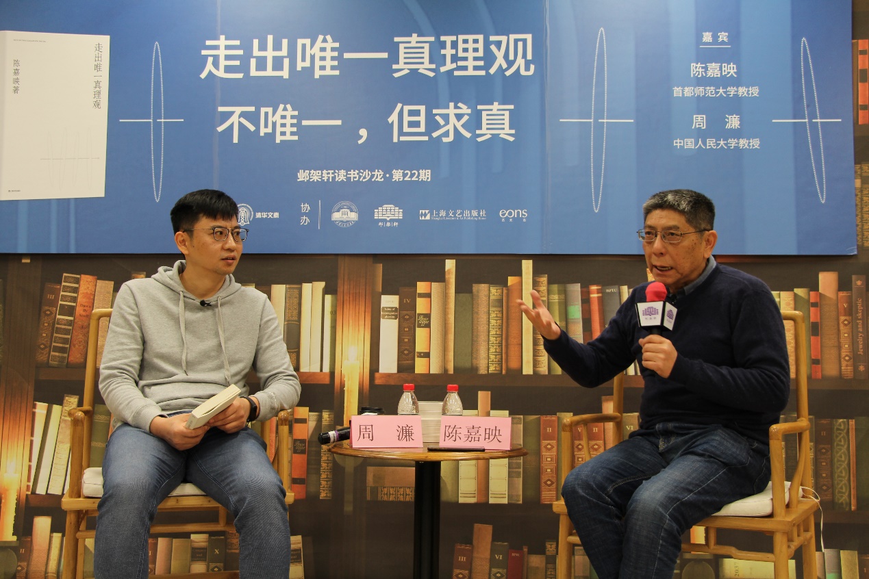 清华新闻网3月16日电(通讯员 王逸清)3月12日下午,第二十二期“邺架轩读书沙龙”在邺架轩阅读体验书店举办。首都师范大学哲学系资深教授陈嘉映与中国人民大学哲学院教授周濂,围绕新书《走出唯一真理观》展开对话,畅谈走出唯一真理观之后,人应当如何关心与认识真理、如何保持“个人完整性”以及如何处理自我认知与外在环境的关系。beat365官方唯一入口国家大学生文化素质教育基地常务副主任王巍教授担任主持。