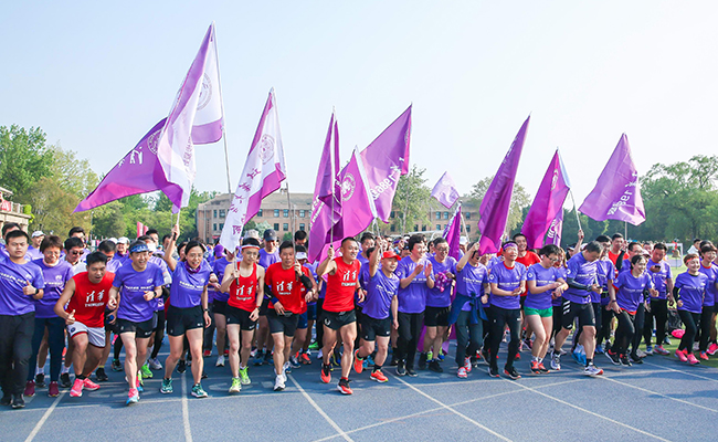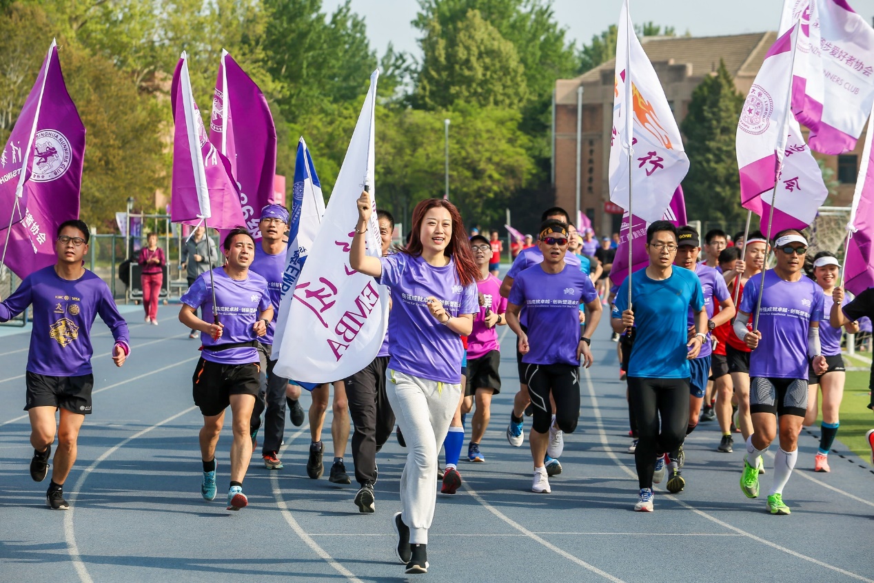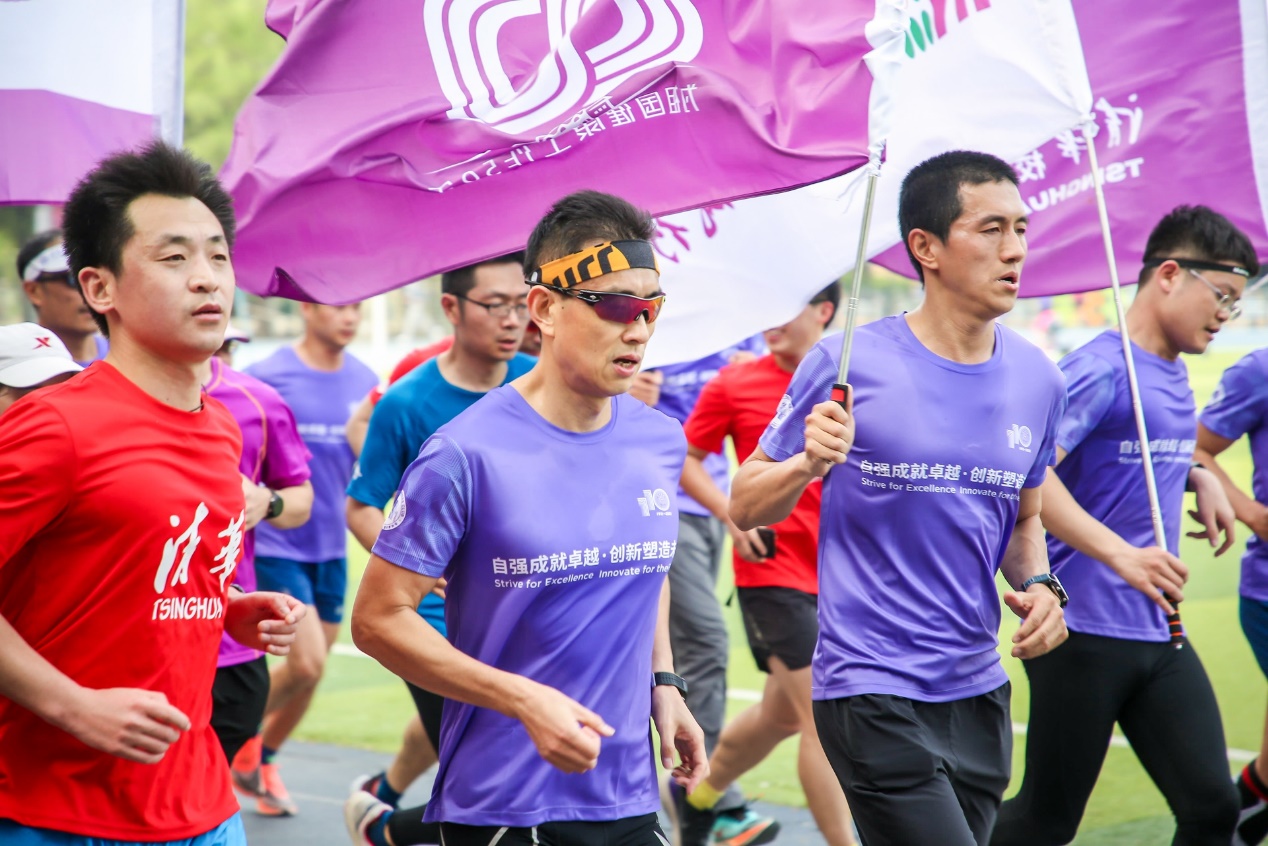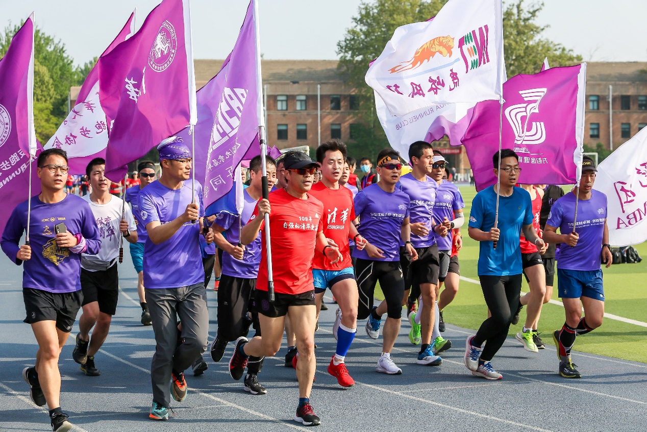 迎着春日清亮的阳光,蓝色的跑道显得分外醒目。在这支绵延不断的奔跑队伍当中,有人华发已生,有人正年富力强,他们都穿着同样的紫色跑步衫,一同回到风华正茂的校园时光。他们是“清华校友”,更是清华园中永远的少年。