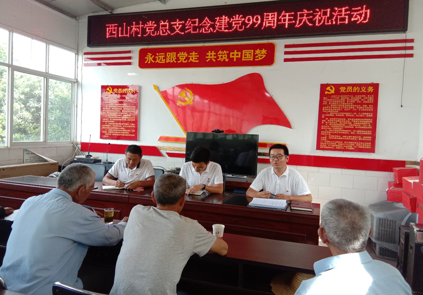 参加西山村党总支纪念建党99周年庆祝活动(后排右一)