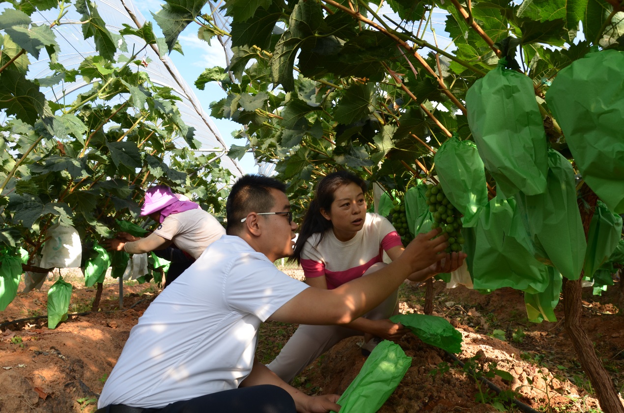 查看葡萄长势(左)