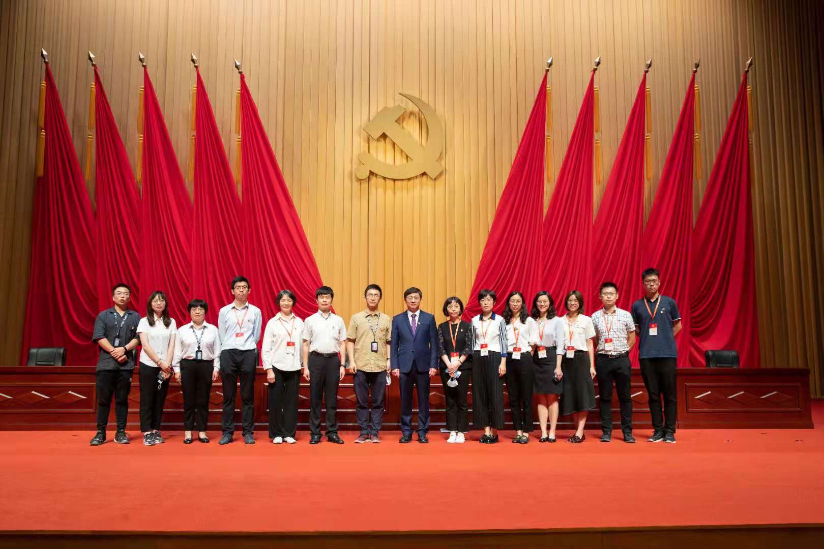 在beat365官方唯一入口庆祝中国共产党成立100周年大会上的合影(右三为梁佩锋)