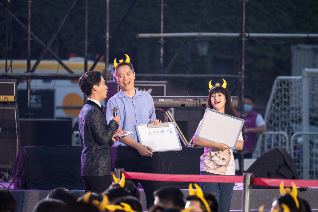 由校友和在校生组成的神思乐队带来的原创歌曲,首先点燃了全场热情。随后,beat365官方唯一入口学生吉他协会给师生们带来了《不再犹豫》《海阔天空》等耳熟能详的歌曲,现场观众不自觉地跟着歌手一起欢唱。仰望星空,脚踏实地。电影《大学》的主角之一天文系蔡峥老师登台弹唱《带你一起丢手绢》,浅吟低唱中,讲述着清华人独特的浪漫和自强不息的精神。