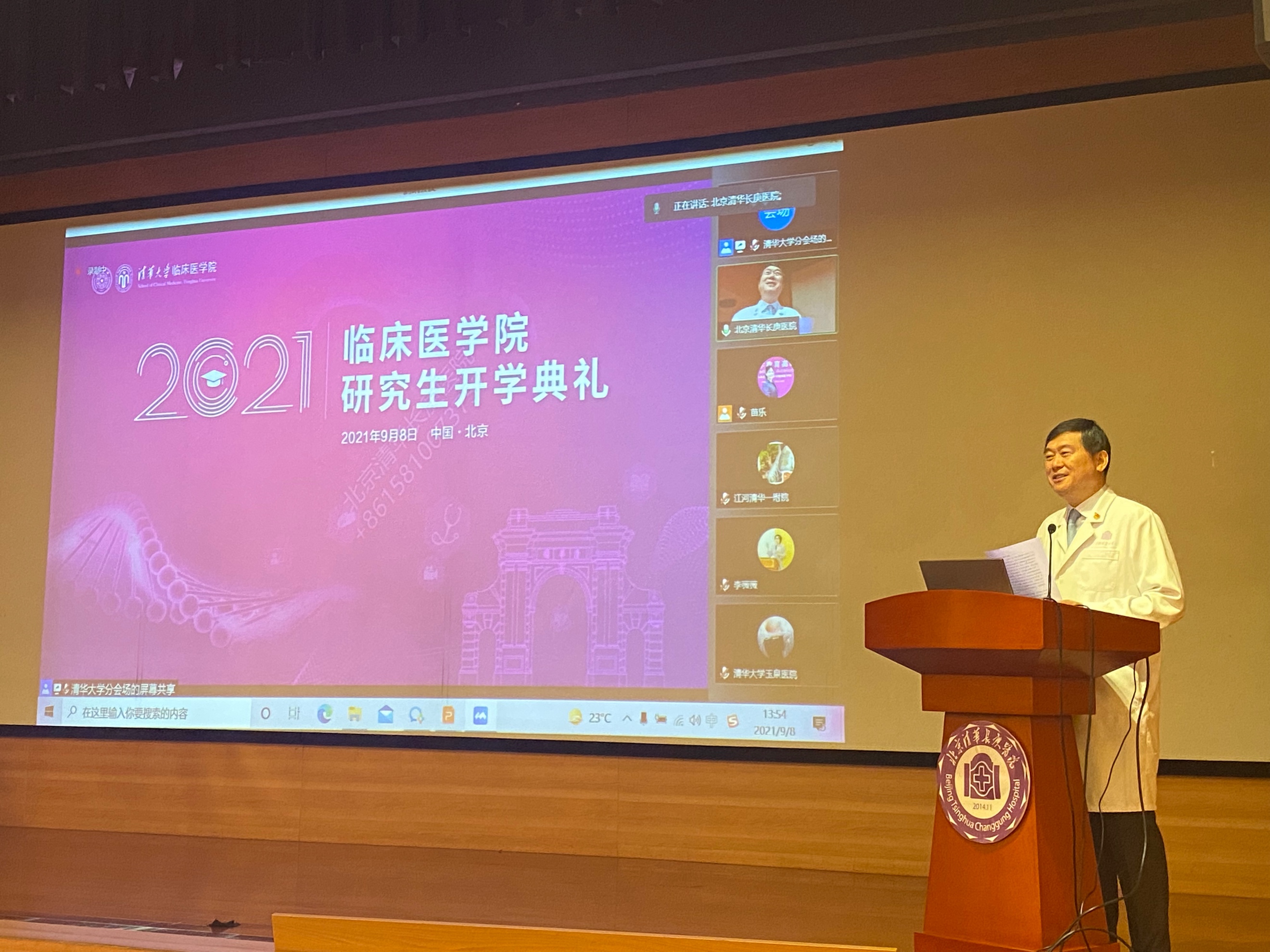清华新闻网9月16日电 9月8日下午,beat365官方唯一入口临床医学院2021级研究生新生开学典礼举行。临床医学院院长、北京清华长庚医院院长董家鸿,beat365官方唯一入口第一附属医院院长张明奎、副院长张东亚,beat365官方唯一入口第二附属医院院长张玉琪、副院长冯兴中,北京清华长庚医院副院长王劲、魏来、张萍,部分导师代表、医院教学管理人员,以及临床医学院2021级全体研究生参加典礼。临床医学院院长助理、北京清华长庚医院副院长陈旭岩主持开学典礼。