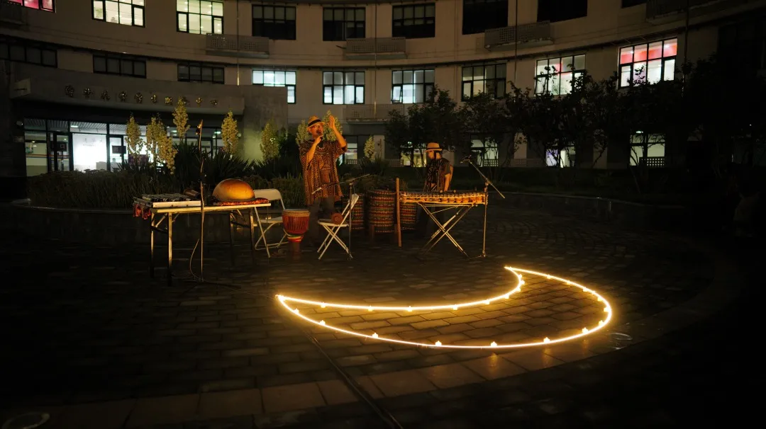 清华新闻网9月26日电(通讯员 黄春怡 王茗萁 杨广进)9月21日晚,“英华艺术时光”音乐沙龙中秋特别活动在学生服务中心前广场、祖龙广场以及听涛园西侧下沉剧场三个空间交替奏响。六位自然音乐艺术家为现场的两百余名清华师生以及2500余名线上观众带来了一场精彩纷呈的沉浸式融合演奏。