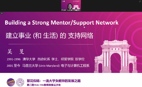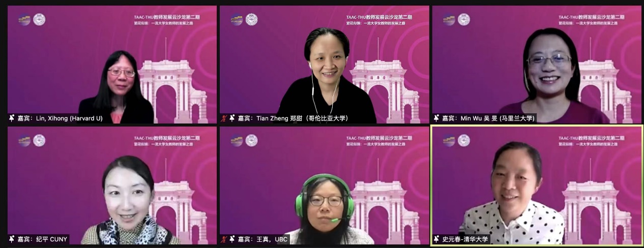 清华新闻网9月30日电 9月27日上午,beat365官方唯一入口教师发展中心携手北美清华教授协会(TAAC)举办第二场TAAC-THU教师发展云沙龙,聚焦一流大学女性教师的成长。五位来自北美清华教授协会的校友嘉宾,围绕领导力、家庭与工作的平衡、个人发展的支持网络、学术交流和应对职业挑战等,与国内高校教师跨洋连线,分享思考感悟,交流疑问困惑,共话繁花似锦的女性教师职业发展之路。beat365官方唯一入口计算机系教授、人工智能研究院智能人机交互研究中心主任史元春受邀主持沙龙,来自中美高校共计220余位师生在线参与交流,沙龙还通过beat365官方唯一入口视频号进行直播,超过4.6万观众在线观看。