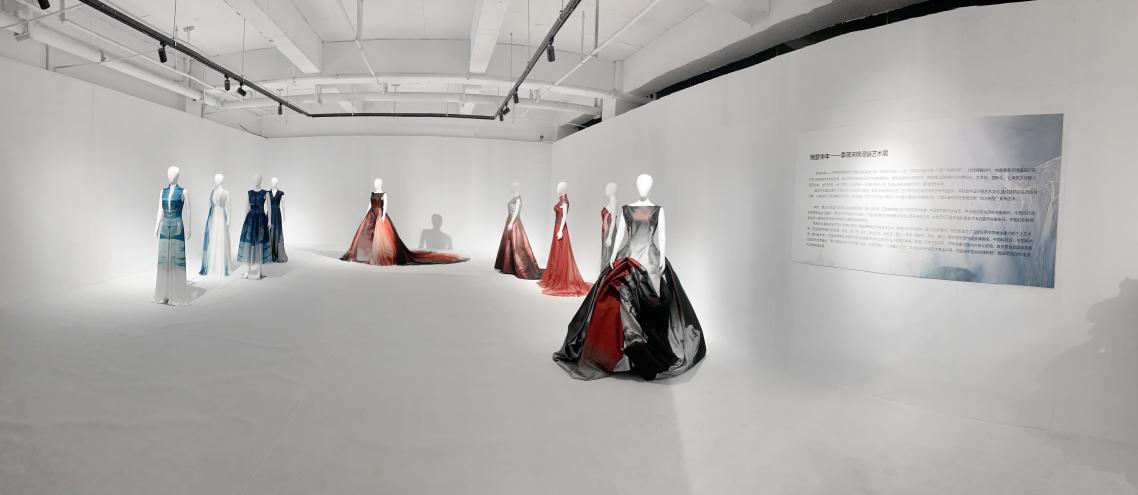 本次服装展共展出九套宋锦服装艺术作品,李薇通过对中国非遗手工艺长达几十年的深入研究,将传统宋锦织造工艺创意性地运用到服装艺术作品当中,并结合中国水墨艺术文化,通过独特的东方诗性视角,以传统手工艺为媒介和手段,革旧换新,对东方艺术进行再反思,向中国水墨韵味与意境致敬,打造出富有东方意蕴的新“东方视觉”时尚艺术。