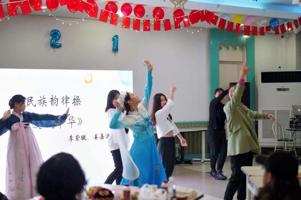 同学们进行了精心准备的舞蹈、歌唱、魔术等多种形式的才艺表演,表演现场精彩纷呈,得到了现场老师同学的一致赞誉。晚会现场还开展了与观众互动的小游戏,多位少数民族同学以及外国留学生都参与到游戏中,场面热烈,氛围温馨。