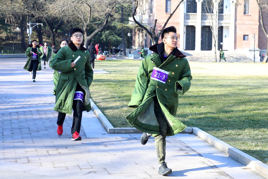 为了让同学们更切身地缅怀历史、感悟时代变迁,本次长跑纪念活动对赛道棒次进行了精心设计。活动以“一二·九”运动中重要事件的发生地点,如西直门、西四、新华门、天桥等地命名路线各个节点,并参照各地大致的空间分布设立相应展区。同时,前五棒每一棒还原“一二·九”运动中的一个特定场景,后五棒融入建党百年、辛亥革命110周年、冬奥会、110周年校庆等元素,将长跑进程和国家历史发展过程相结合。