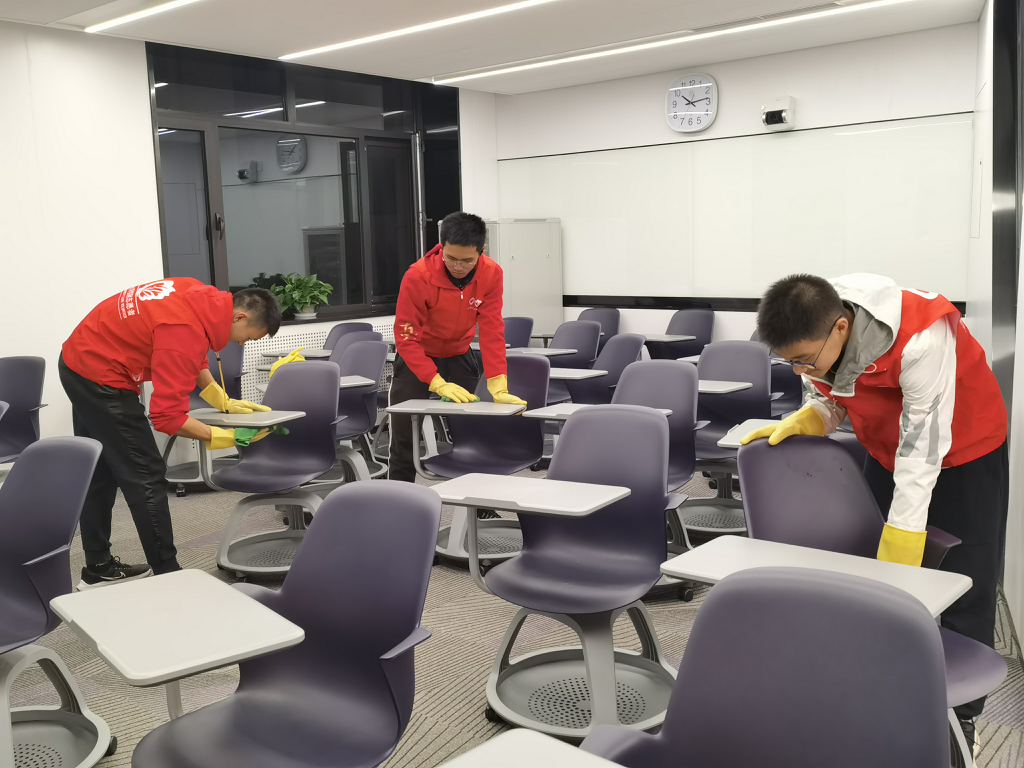 志愿者正在打扫教室