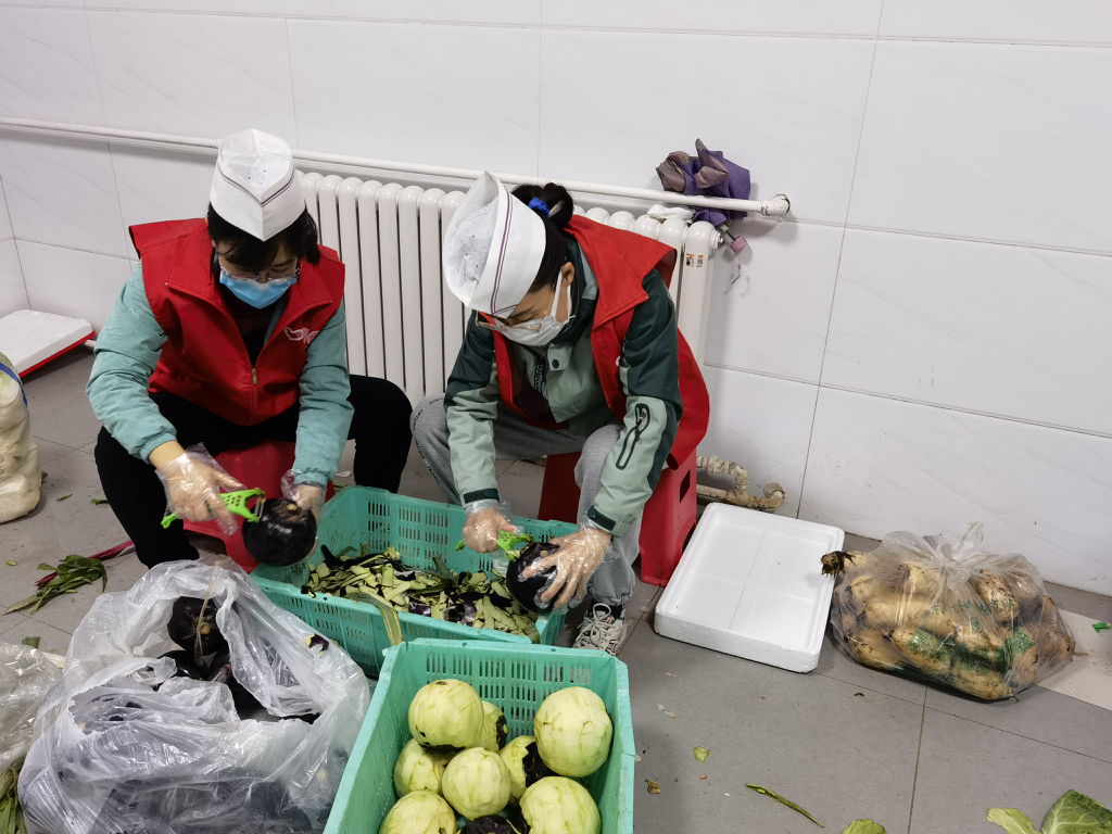 志愿者们正在择菜