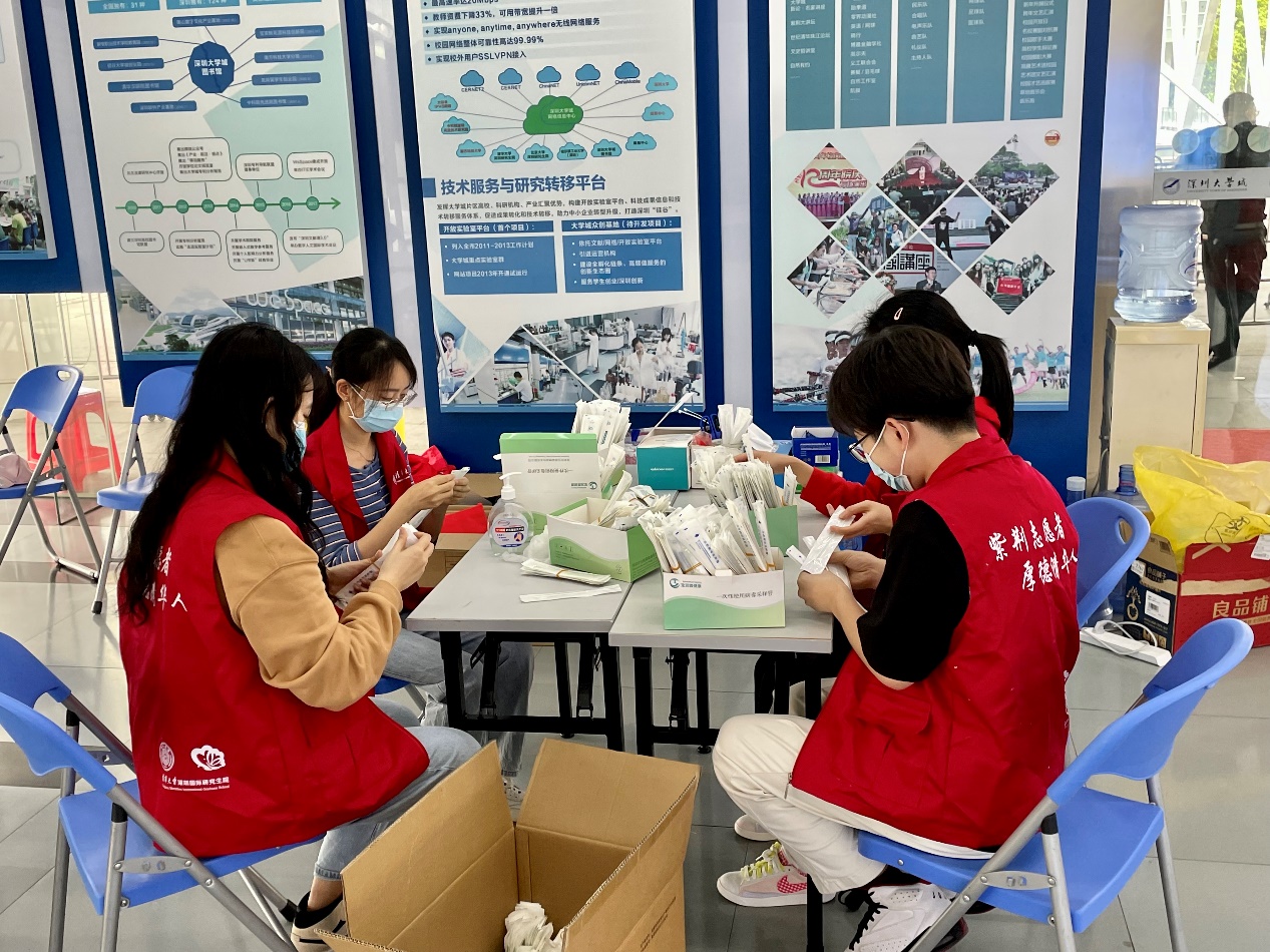 越是急难险重的工作,越见本领和担当。疫情前景并未明朗,及时全面地开展社区核酸检测也是本次防疫行动的关键。社区核酸检测工作时间紧、任务重,但同学们始终保持自强不息、不惧挑战的精神。同学们在紧张的科研学习任务中抽出宝贵时间投入志愿抗疫工作,社区防疫志愿组迅速成立起来。接到任务后,志愿者们20分钟组队,60分钟到岗协助。针对检测任务量大的状况,小组同学立即开展讨论,在调整志愿工作轮班方案后,原来人手紧张、工作时间长等问题迅速得到改善,核酸检测工作得以顺利进行。
