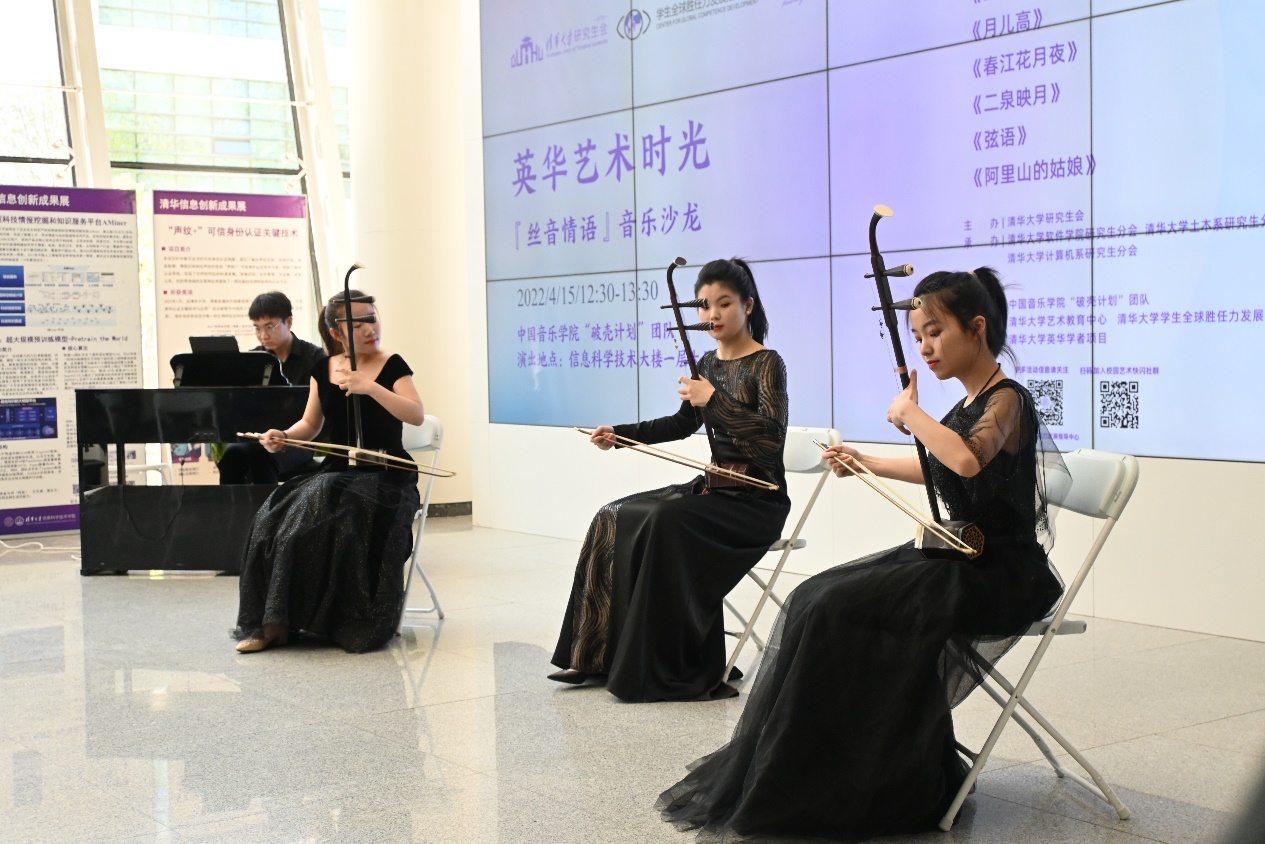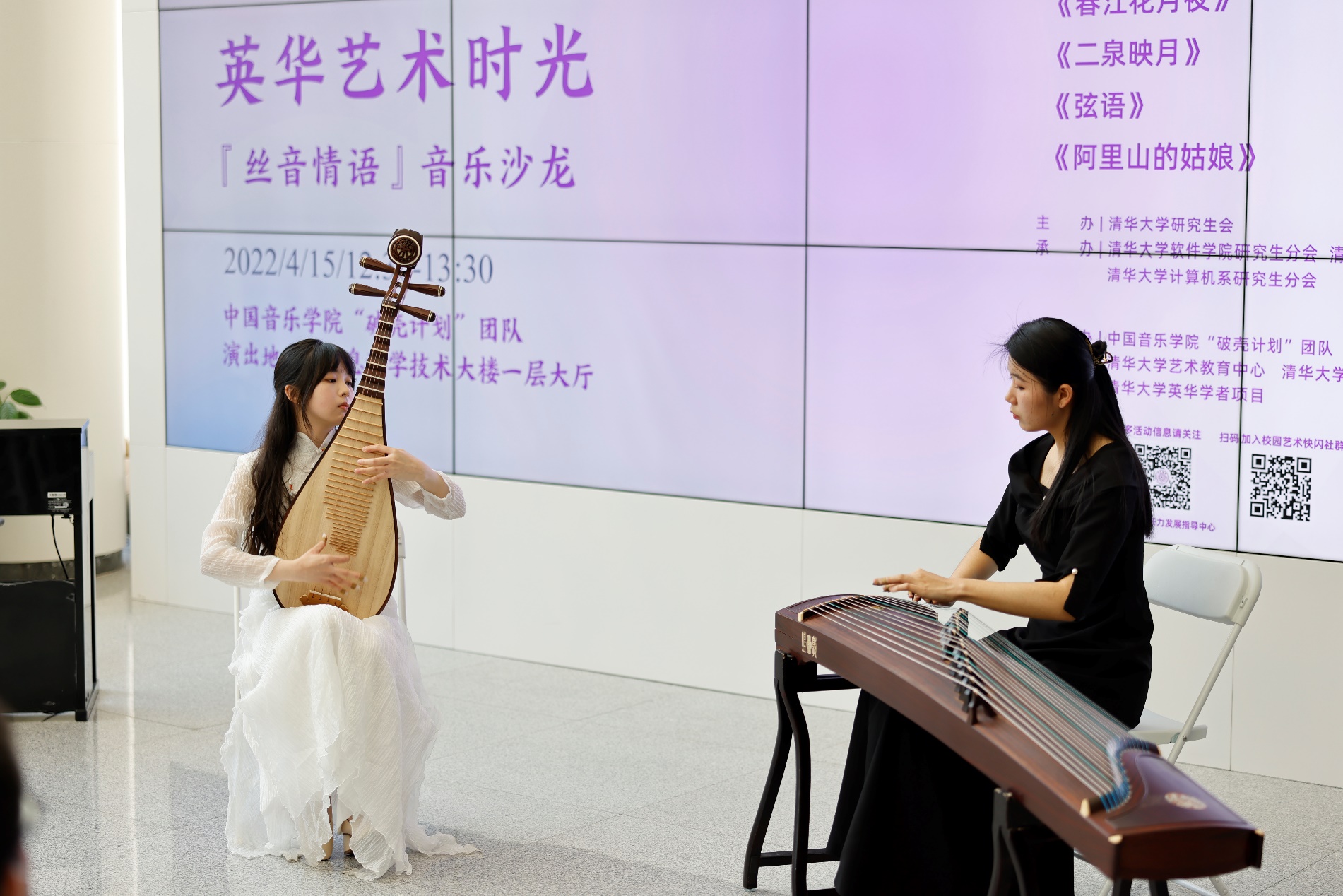 清华新闻网4月20日电(通讯员 赵胤钦)4月15日中午,“英华艺术时光·丝音情语”音乐沙龙在信息科学技术大楼(FIT楼)一层公共空间奏响。来自中国音乐学院的“破壳计划”团队为现场百余名师生带来了一场婉转悠扬的民乐盛会。