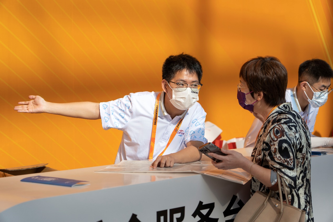 经过通用培训、岗前踏勘和实地演练,志愿者们于9月1日起正式上岗参加志愿服务,一直服务至9月5日服贸会结束。在国家会议中心,志愿者们承担着室内咨询服务岗工作,负责提供路线指引、信息咨询、应急救助等服务,用青春、朝气和责任心为精彩的服贸会作出了自己的贡献。