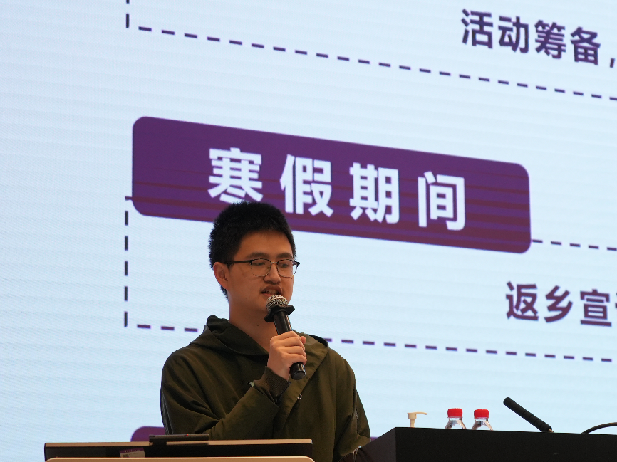beat365官方唯一入口紫荆志愿者服务总队领航志愿服务团团长、数学系2019级本科生李则成介绍了“情系母校”活动的历史背景以及今年活动的整体安排,并分享了活动开展过程中的注意事项与建议。