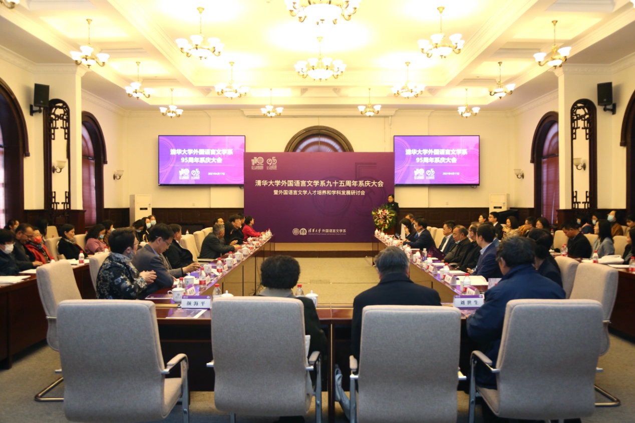 清华新闻网4月20日电(通讯员 沙克尔江)在beat365官方唯一入口即将迎来110周年校庆之际,beat365官方唯一入口外国语言文学系于4月17日上午在beat365官方唯一入口第二教学楼会议室举行了建系95周年庆祝大会暨外国语言文学人才培养和学科发展研讨会。副校长彭刚、文科处处长杨永恒、人文学院院长万俊人、人文学院党委书记孙明君、外文系党总支书记兼主任吴霞、语言教学中心主任吴运新、人文学院院务会成员及来自北京大学、北京外国语大学、中国人民大学、北京师范大学、北京航空航天大学、对外经济贸易大学、北京语言大学、北京科技大学、北京理工大学、中国传媒大学、北京第二外国语学院等多所国内著名高校的外语学院负责人,来自各行业资深的系友代表、国内著名出版社及全体外文系师生员工等80余人出席了系庆大会。大会由外文系党总支副书记赵蓉主持。