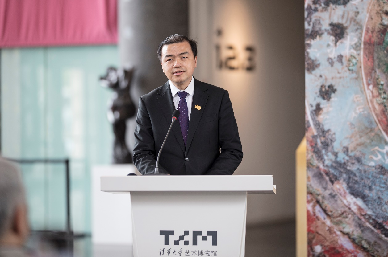 谈晟广在致辞中表示,感谢王纲怀先生的捐赠和鼓励,感谢全国各个博物馆、机构以及个人藏家的支持,使清华艺术博物馆能够举办这样一个精品荟萃、门类齐全的铜镜展览。展览也非常幸运地借到了五面具有“中国”铭文的铜镜,这是前所未有的。希望展览能激发更多人对于中国古代铜镜的兴趣,希望能把铜镜研究带入艺术史,使它成为一个更具广阔研究空间的门类。