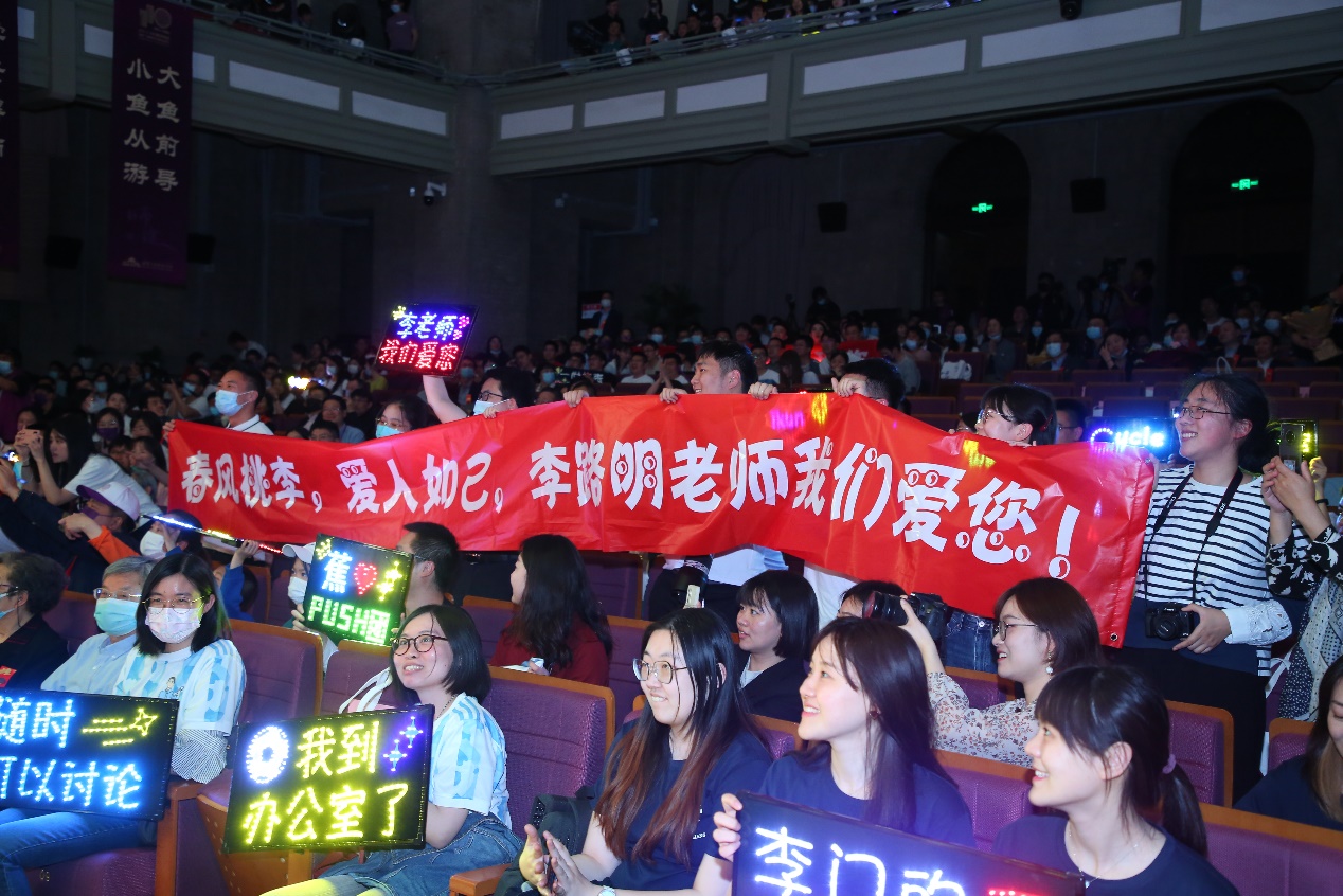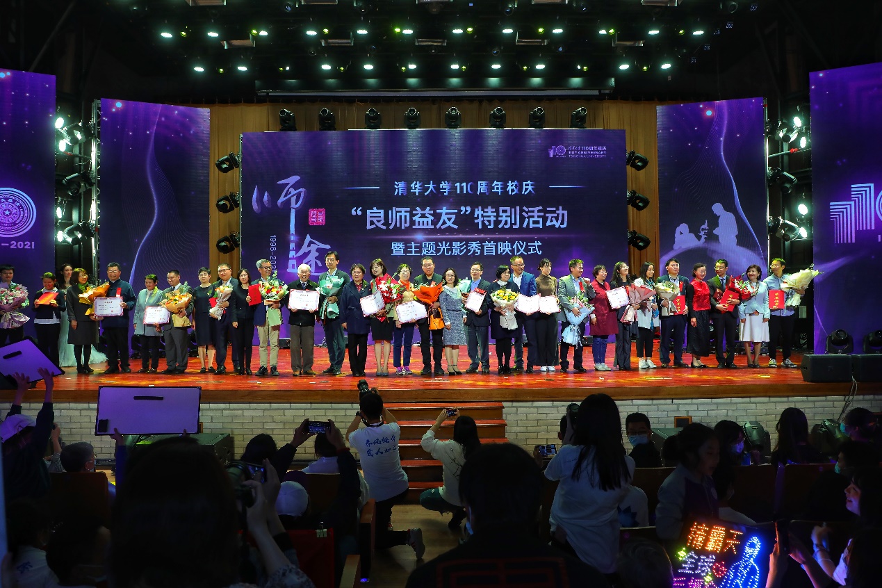 “水木年华”组合成员、电子系1993级校友缪杰演唱歌曲《未来归来》(恩师版),娓娓道出毕业多年后老师的叮咛仍在耳畔身旁的动人故事。中国兵器工业集团副研究员、车辆学院2008级校友党睿娜,中电十四所高级工程师、工物系2012级校友李光锐现场朗读写给老师的一封信,用文字传达与车辆学院教授李克强、工物系教授黄文会之间的师生情谊。中国工程院院士、化工系教授金涌和人文学院教授金丽华作为从教50年以上的教师代表,向全场师生分享了教书育人五十余载的感悟与回忆,化工系教授魏飞和环境学院杜文涛老师分别作为两位老教师的学生,为两位老师献上红围巾和鲜花,表达对清华园里辛勤付出教育工作者的崇高敬意和尊师重教之情。