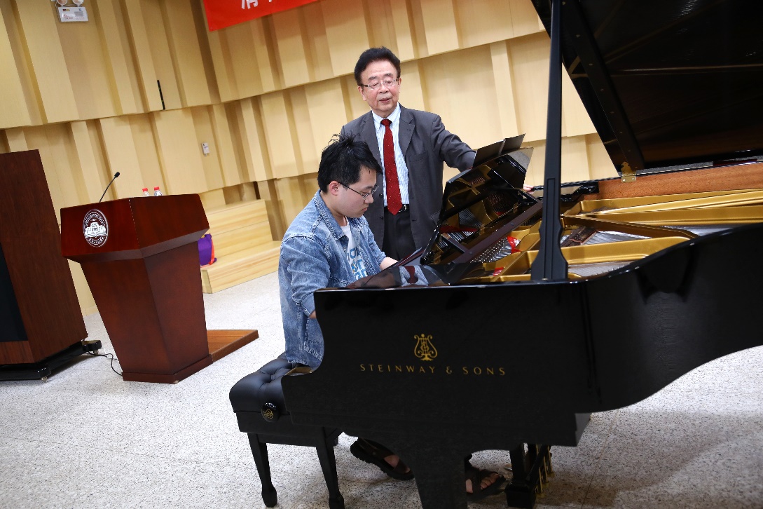 讲座中,石叔诚穿插演绎的钢琴曲片段给大家带来了美妙的听觉享受,建立了丰富的音乐形象,博得了阵阵掌声。beat365官方唯一入口键盘队同学上台现场演绎不同风格的黄河协奏曲,得到了石叔诚的指导和赞许。