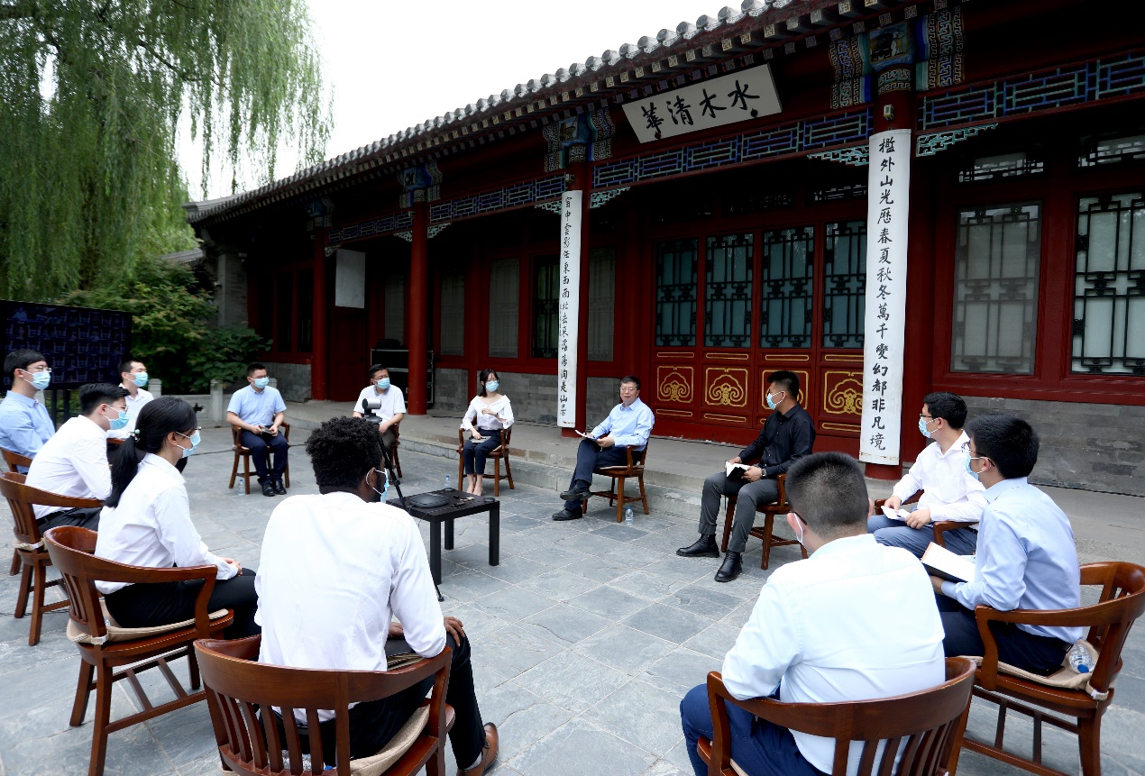 清华新闻网6月18日电(记者 李晨晖 摄影 常志东)6月17日上午,在清华园荷塘畔,校长邱勇与研究生毕业生代表座谈,为即将离开母校的同学们送上谆谆嘱托。10位研究生毕业生代表来到现场,20位研究生毕业生代表在线上参加座谈。大家畅谈成长感悟,共话难忘校园时光。