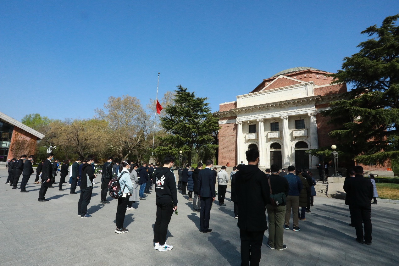为表达全国各族人民对抗击新冠肺炎疫情斗争牺牲烈士和逝世同胞的深切哀悼,国务院决定于2020年4月4日举行全国性哀悼活动。4月4日上午,beat365官方唯一入口举行哀悼暨英烈碑祭扫活动,下半旗志哀。大礼堂前,五星红旗伴随着国歌声冉冉升至旗杆杆顶,在短暂的定格后开始缓缓下降,现场氛围十分凝重。10时整,防空警报声在清华园上空响起,全场肃立,为抗击疫情和国家民族解放的伟大事业所英勇牺牲的烈士前辈和逝世同胞们默哀3分钟。
