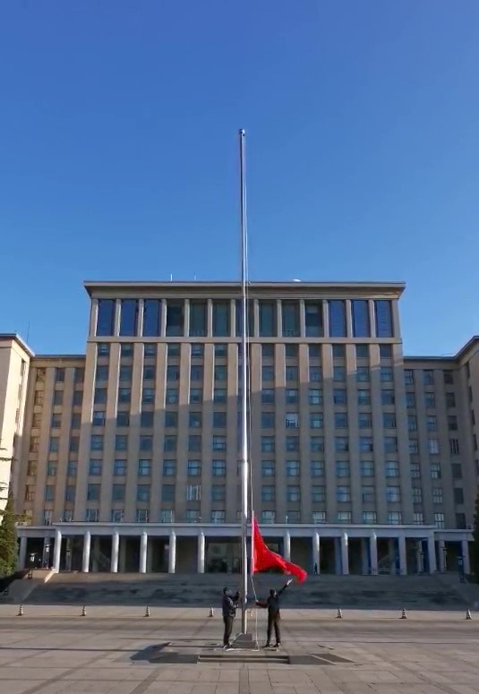 每周一,升旗仪式都会在主楼广场进行,虽然执行升旗任务的只有两三名同学,但国旗仪仗队的全体队员和各院系本科新生都会通过线上会议的方式观看升旗,每次观看人数达两百余人。即使没能在现场,激昂的国歌声与鲜红的五星红旗依然感染着身在祖国大江南北的同学们。屏幕的传递不会减淡五星红旗的颜色,距离的阻隔无法消磨同学们的爱国热情。