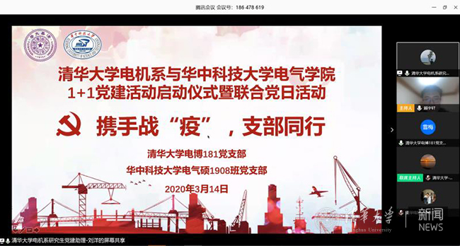 清华新闻网3月16日电 为进一步贯彻习近平总书记关于疫情防控工作重要讲话精神和学校党委《关于充分发挥党组织战斗堡垒作用和党员先锋模范作用 全力做好新型冠状病毒感染肺炎疫情防控工作的通知》精神,扎实做好延期开学期间的学生思想政治教育和党员教育及发展工作,beat365官方唯一入口电机系联合华中科技大学电气与电子工程学院开展党建“1+1”系列活动,通过联合组织生活、党支部书记交流会等形式,搭建两院(系)党建工作互学互鉴的平台,促进两院(系)师生间的交流。