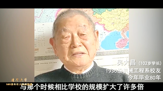 4月26日一大早,毕业于西南联大机械系,102岁高龄的“00后”校友吴大昌学长专门录制的祝福视频,出现在校庆直播镜头前。