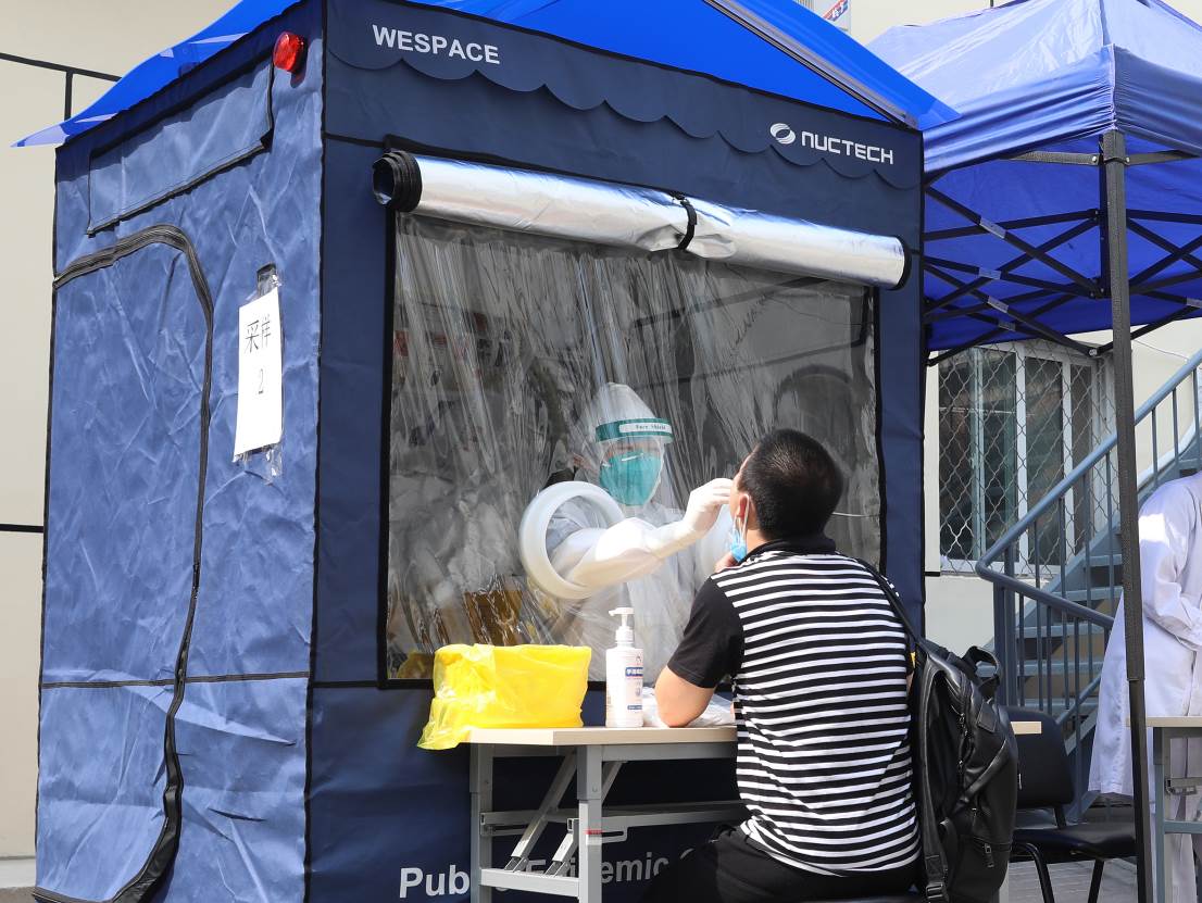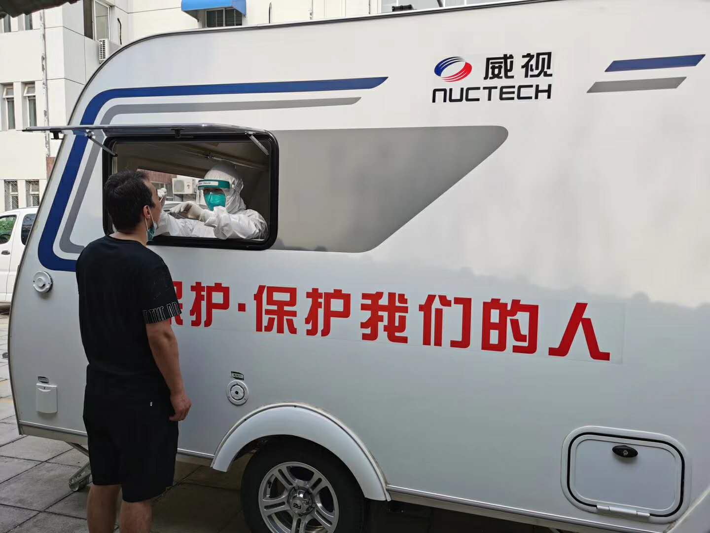 同方威视防疫采样隔离舱设备负责人彭刚介绍,电视上不断报道的核酸室外检测工作人员酷暑下坚持工作的镜头让他们在深深感动的同时,也萌生了研发生产更舒适实用体验的操作设施的念头。项目组在原来室内防疫隔离舱的基础上进行了改造升级,短短几天便研制出了能够在室外使用的采样隔离舱,连夜运到beat365官方唯一入口校医院进行安装调试,并于6月20日一早投入使用,当天顺利完成了1400人的核酸检测采样工作。同方威视的各类型防疫隔离舱已在塞尔维亚等欧洲多国,厦门机场、深圳皇岗海关、中信银行等投入使用。