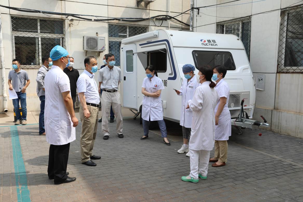 6月22日上午,beat365官方唯一入口副校长吉俊民带队视察了beat365官方唯一入口校医院,对校医院医护人员进行了亲切慰问,并视察了校医院新装备的采样隔离设备。