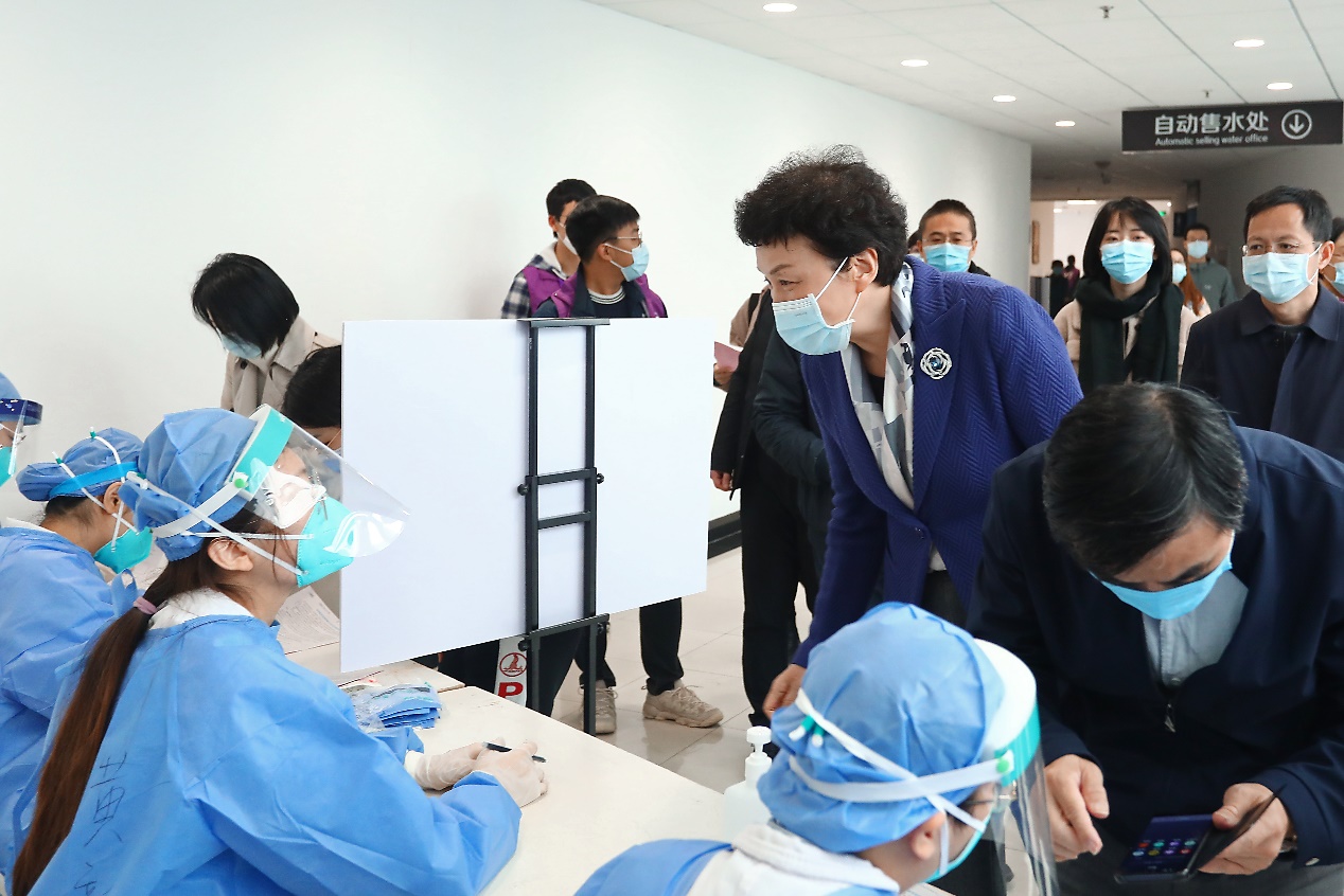 10月31日上午,过勇一行来到综合体育馆看望医务人员和正在接种加强疫苗的师生,向医务人员的辛勤付出和同学们对学校疫苗接种工作安排的支持、理解表示感谢,并期待学校疫情防控工作取得最终胜利。