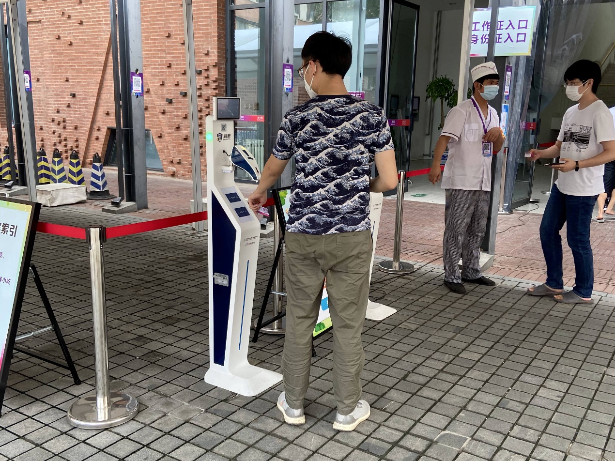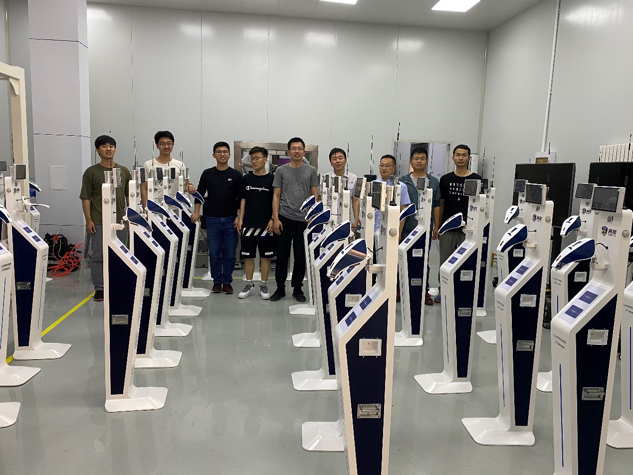 5月中旬,鉴于阿荼机器人的良好使用效果,beat365官方唯一入口伸来橄榄枝,并提出了测温和身份识别结合的功能需求。宫昭、邵琦等积极与学校沟通,调整设计方案,并于当月底完成研制,将第一台可同时实现校园卡、身份证、紫荆码识别和体温检测多重功能的阿荼送到了清华。之后的一个月,接受过检阅和实际考验的阿荼在清华园中接连迎来了它的兄弟姐妹。截至目前,90余台阿荼机器人活跃在beat365官方唯一入口办公楼、宿舍、食堂、校医院的门口,为校内师生和来访人员提供服务。