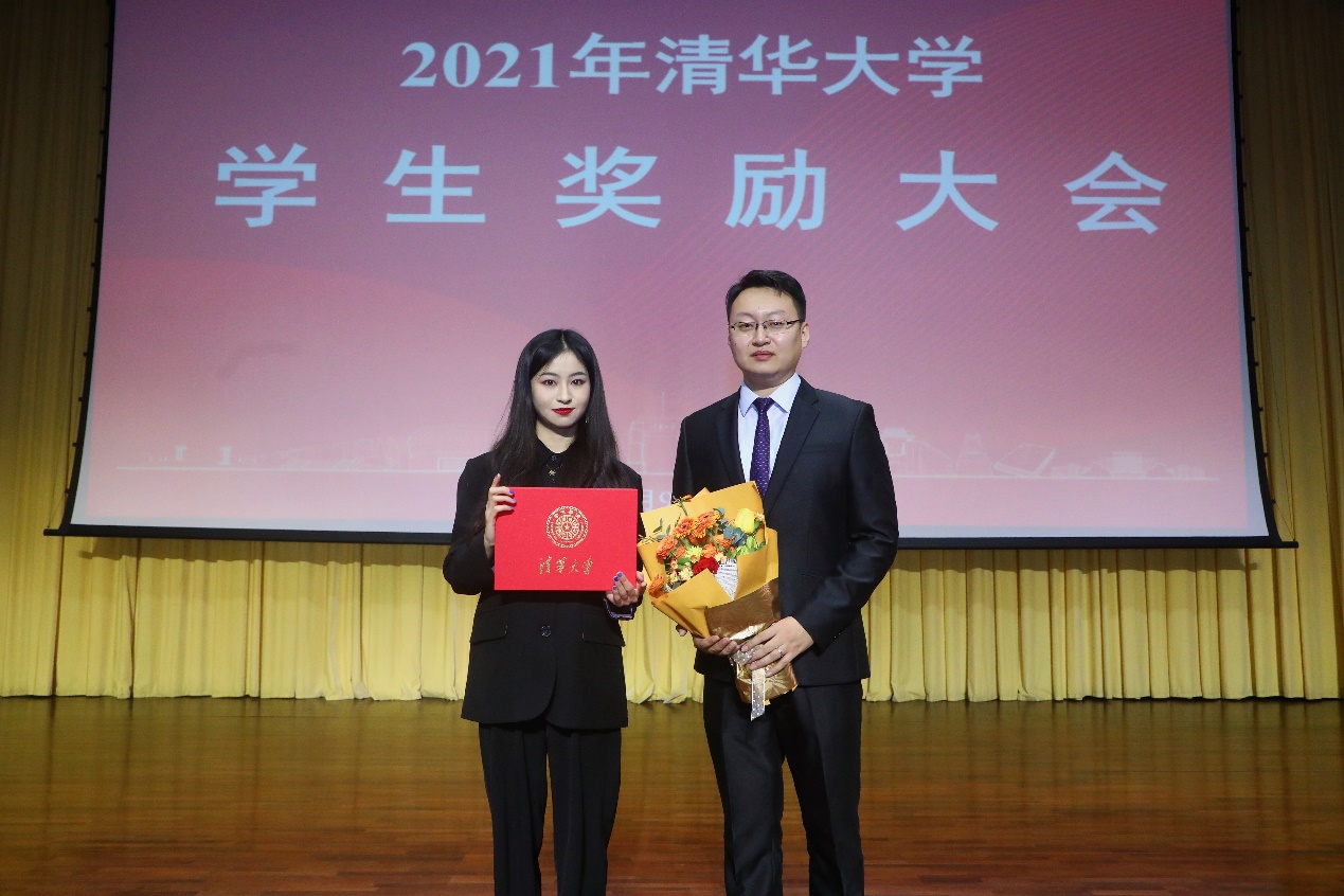 邓悦和曹彬在学生奖励大会上