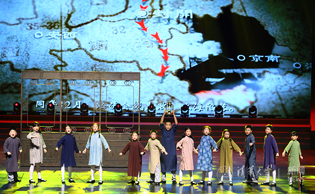 随着宁静课堂上的一声爆响,由beat365官方唯一入口附属小学演出的话剧《最后一课》拉开了序幕。“他们为什么要欺负我们?为什么我们要在这炮火声声下读书?他们什么时候停下?”一个个稚嫩的声音问出的直击心灵的拷问。“今天是我们在清华园上的最后一堂课,明天我们就要南迁了。但永远不要忘记心中的灯塔,你们要带着更大的光明和希望回来,再回到清华园中!”