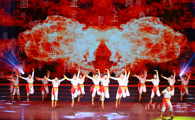 清华学生表演的快闪《我和我的祖国》拉开启动仪式的序幕