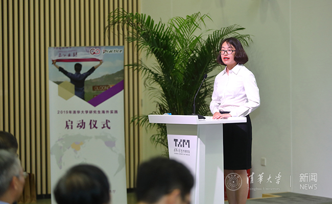 即将赴蒙古国开展海外实践的材料学院2017级博士生宋琪作为学员代表发言,她对学校和企业提供的海外实践机会表示感谢,并表示会多听、多看、多说、多想,勇担社会责任,展现清华风采。