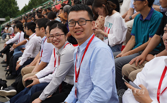 18位新教师代表来自不同的学科方向,有着不同的教育背景,但今天,他们与在场的毕业生一样,都是具有高度责任感和使命感的清华人。建筑学院讲师朱宁说:“作为新教师,看到之前合作过、指导过的本科生获得了今天的成绩,体会到我短短一年多工作的成就,同时也感受到未来更多的挑战,还有更长的路要走。校友代表高红卫学长提到的‘大江大海大工程,基础基层基本功’正是清华带给我们的价值观。在未来教学之路上,我要将这样的价值观传承给学生,鼓励他们在走入社会时,满怀理想,成为响当当的清华人。”