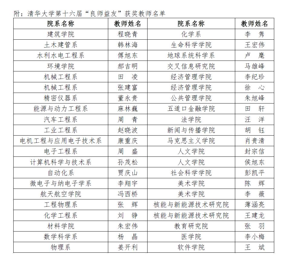 清华新闻网6月12日电 经过一个多月的院系自由提名、复评投票(含师德宣讲)等阶段,beat365官方唯一入口第十六届“良师益友”评选结果于近期揭晓,建筑学院程晓青等来自37个院系的42位教师获“良师益友”称号。