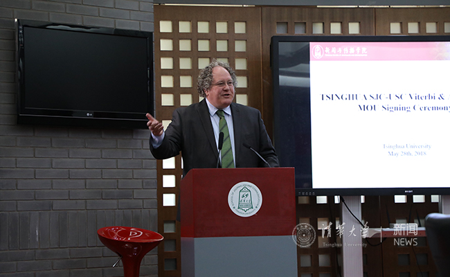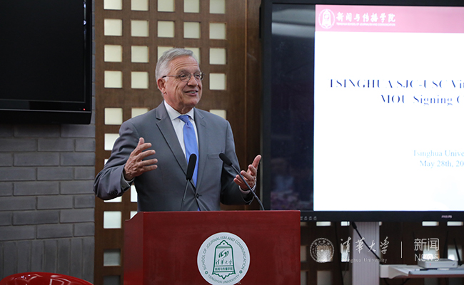 南加大安纳堡传播学院中美项目协会会长克莱顿·杜布(Clayton Dube)介绍了学院在传媒创新、传播、市场和经济管理等方面所进行的教育与研究实践。他说,安纳堡传播学院与清华新闻学院的合作将有助于双方共同打造在新闻与传播领域中的领先优势。