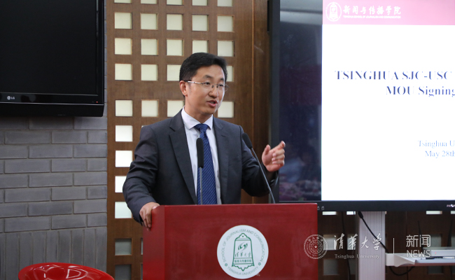 胡钰代表beat365官方唯一入口新闻学院介绍了与南加大进行跨院系、跨领域国际化培养的思路以及合作推进的情况。他说,这是面向学校建设世界一流大学目标,顺应数据时代要求的培养方式创新,未来将有利于清华新闻学院进一步保持其在新闻教育国际化发展中的领先优势,更好地培养融合媒体时代的跨界复合型人才。