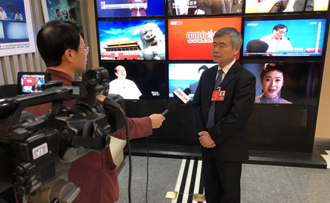 蔡继明在两会上接受采访。来源:经济日报-中国经济网