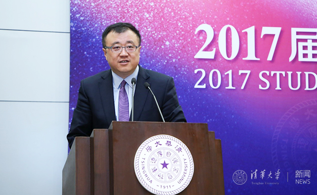 杨斌在致辞中首先代表学校对获得荣誉证书的2017届“清华学堂人才培养计划”毕业生表示祝贺,对学堂班的首席教授、项目主任、任课教师以及所在院系的各位老师表示感谢。杨斌回顾了开展“学堂计划”初衷,其目的是希望培养基础学科领域拔尖创新人才。从这个计划实施至今,无数人为之投入心血和付出,希望大家能够将这份国家责任铭记在心。