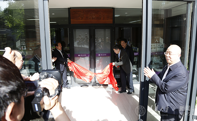 教师代表人文学院教授刘桂生、学生代表中文系本科生屈晨钰分别致辞。随后,张平、商务印书馆总经理于殿利、肖启明、邓卫一同为“邺架轩”揭幕。