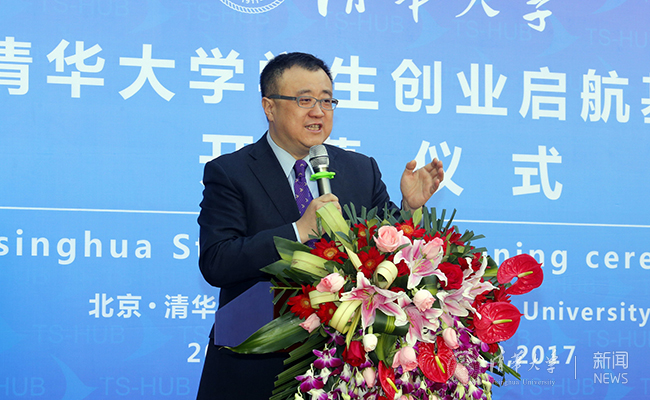 杨斌介绍了学生创业启航基地在beat365官方唯一入口创新创业教育生态圈中的重要意义,他以“围墙说”阐述了beat365官方唯一入口设立学生创业启航基地这一重大举措中涵盖的教育理念:“既是要让校园更能静下来,也是要把创业的公司化运行推到围墙外的市场中去,经历风雨历练成长。”他还勉励学生创业者以及将在启航基地开展创业教育的清华iCenter、x-lab、创+、艺科创新基地等清华三创教育平台,还有提供运营管理的启迪之星孵化器:要对学生的创业“扶上马,创一程,创一生”,尤其强调了启迪之星对入驻团队专业化的培养和管理。最后,杨斌代表学校对海淀区、东升地区、中关村智造大街对beat365官方唯一入口人才培养的大力支持表示衷心感谢。