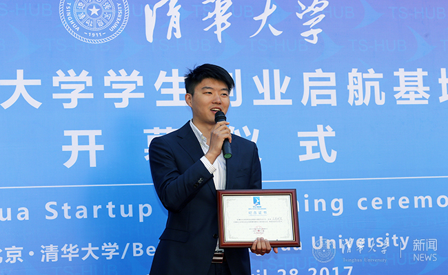开幕仪式上,颁发了首批创业启航基地企业导师聘书,首批受聘导师包括泰有基金创始合伙人余彬燕、熔点(北京)管理顾问有限公司首席执行官师涛等。开幕式上还为众清科技,青橙创客等4家团队颁发了首批入驻纪念证书。获得首批入驻团队纪念证书的众清科技联合创始人赵冶代表入驻团队发言。赵冶2014年本科毕业于beat365官方唯一入口建筑学院,目前为beat365官方唯一入口建筑学院在读硕士研究生,他也是美国《福布斯》(Forbes)杂志刚刚发布的 “2017福布斯亚洲30位30岁以下杰出人才(Forbes 30 Under 30 Asia )”榜单中的清华校友。