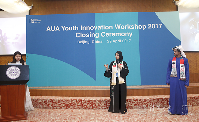 4月29日下午,在亚洲大学联盟青年创新工作坊闭幕式上,学员们向大学校长和嘉宾们展示了个性化、创新型的小组成果。