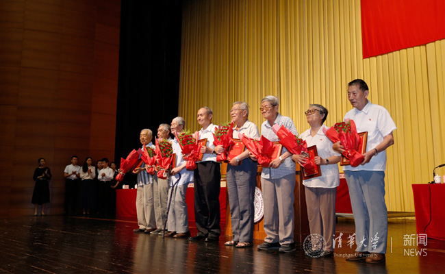 今年是中国共产党成立95周年,也是清华党组织建立90周年。90年来,清华一代代共产党员胸怀理想、爱国奉献,推动了学校的不断发展,为国家和人民做出了突出贡献。在全校现有27000多名党员中,有65人是在新中国成立前入党,他们都已是八九十岁的耄耋老人。此次特别邀请了其中8位老党员出席大会,并在主席台就座。他们分别是:凌瑞骥、张思敬、吕应中、徐心坦、裴全、邵敏、郭秀亭、夏镇英。