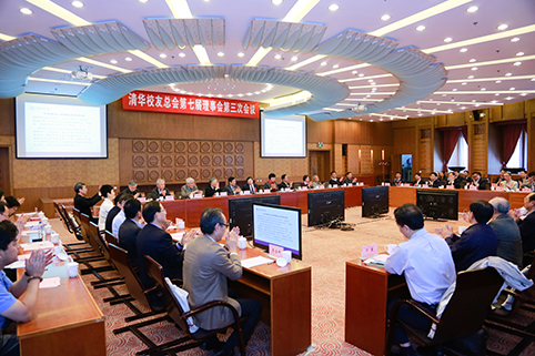 陈旭首先通报了清华校友总会第七届理事会第三次会议的到会人员情况,本次会议应参会理事89人,实际参会理事60人,合乎法定人数。